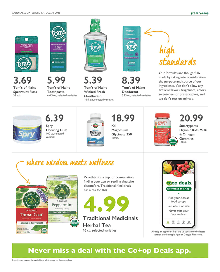 Some of the following Co+op Deals may not be available at Rising Tide. Due to the uncertainty of availability, we are not able to grant “rain-checks” at this time. We apologize for any inconvenience.