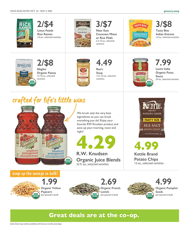 Some of the following Co+op Deals may not be available at Rising Tide. Due to the uncertainty of availability, we are not able to grant “rain-checks” at this time. We apologize for any inconvenience.